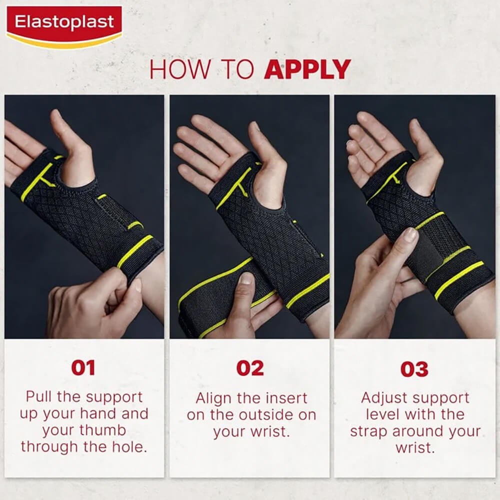 Elastoplast Performance Wrist Support helps provide strength, protection, compression and support to stiff, weak, painful, or injured wrists. It supports an active recovery by stimulating the bloodflow, and the flexible fabric provides ultimate comfort.