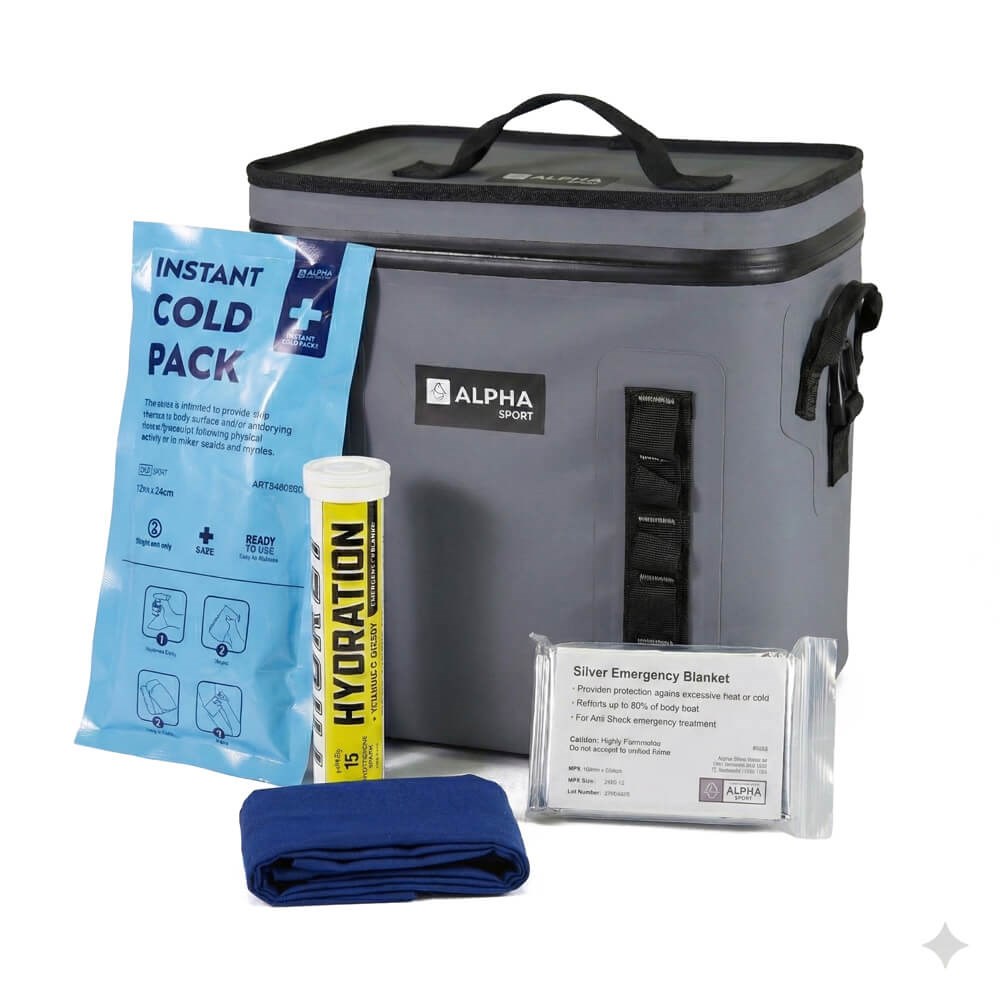 - Alpha Sport Insulated Drink Cooler: A durable, portable cooler that keeps all kit components organised, protected, and easy to access on the sideline or in the team tent.