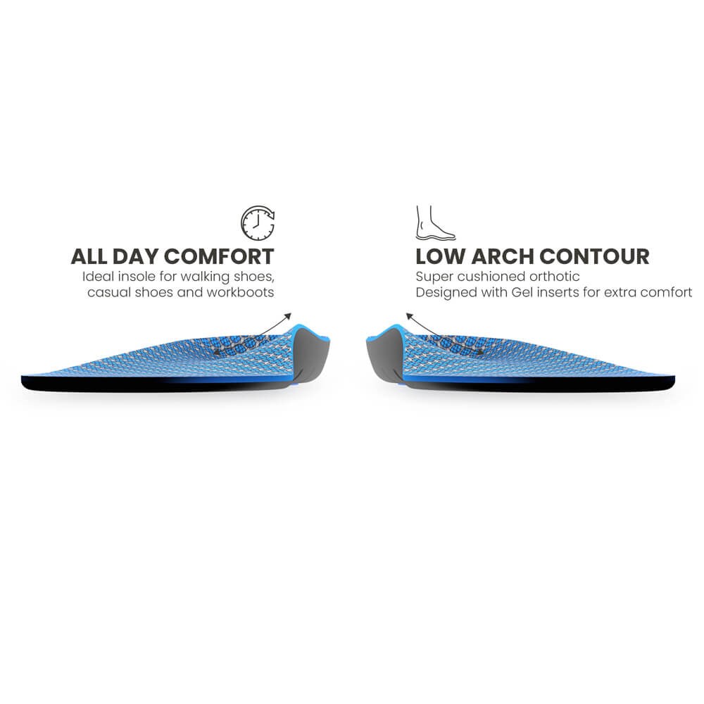 Lightfeet Cushion Comfort features a 3mm memory foam top layer that conforms to the shape of the feet, offering luxurious cushioning and relief from impact stresses.