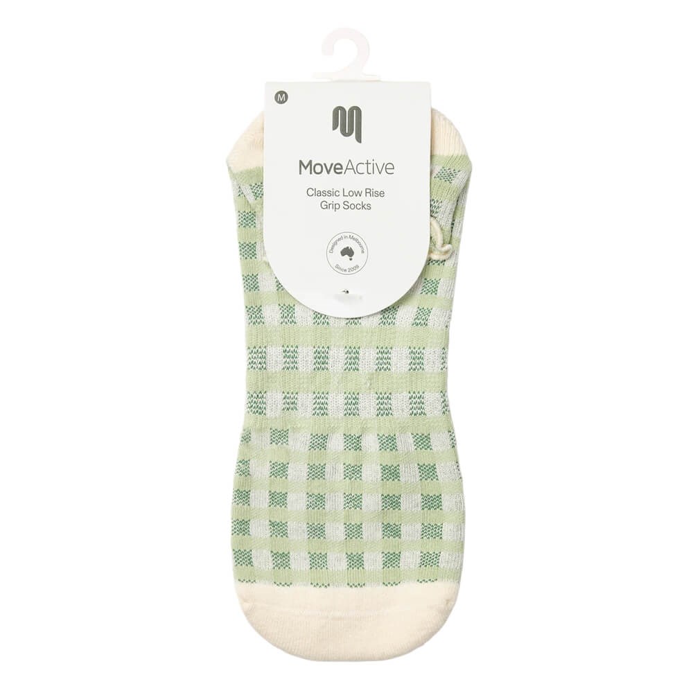 Move Active Non-Slip Pilates Socks - Gingham Frill Mint