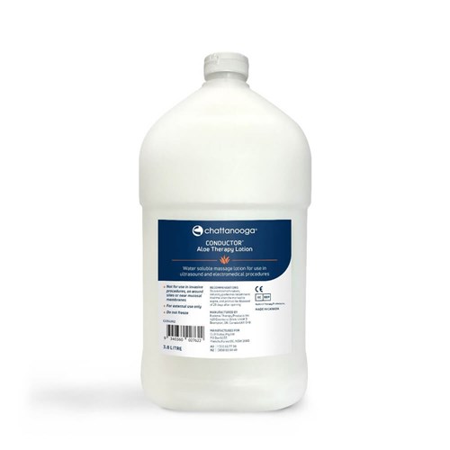 The Chattanooga Conductor Aloe Therapy Lotion (3.8L) is a non-sterile, non-allergenic, medium viscosity, ultrasound lotion formulated primarily for use in diagnostic imaging and other external procedures requiring a thinner medium. It is non-sensitising and water soluble.