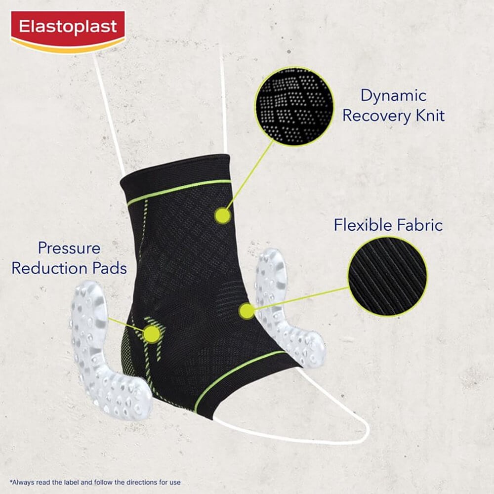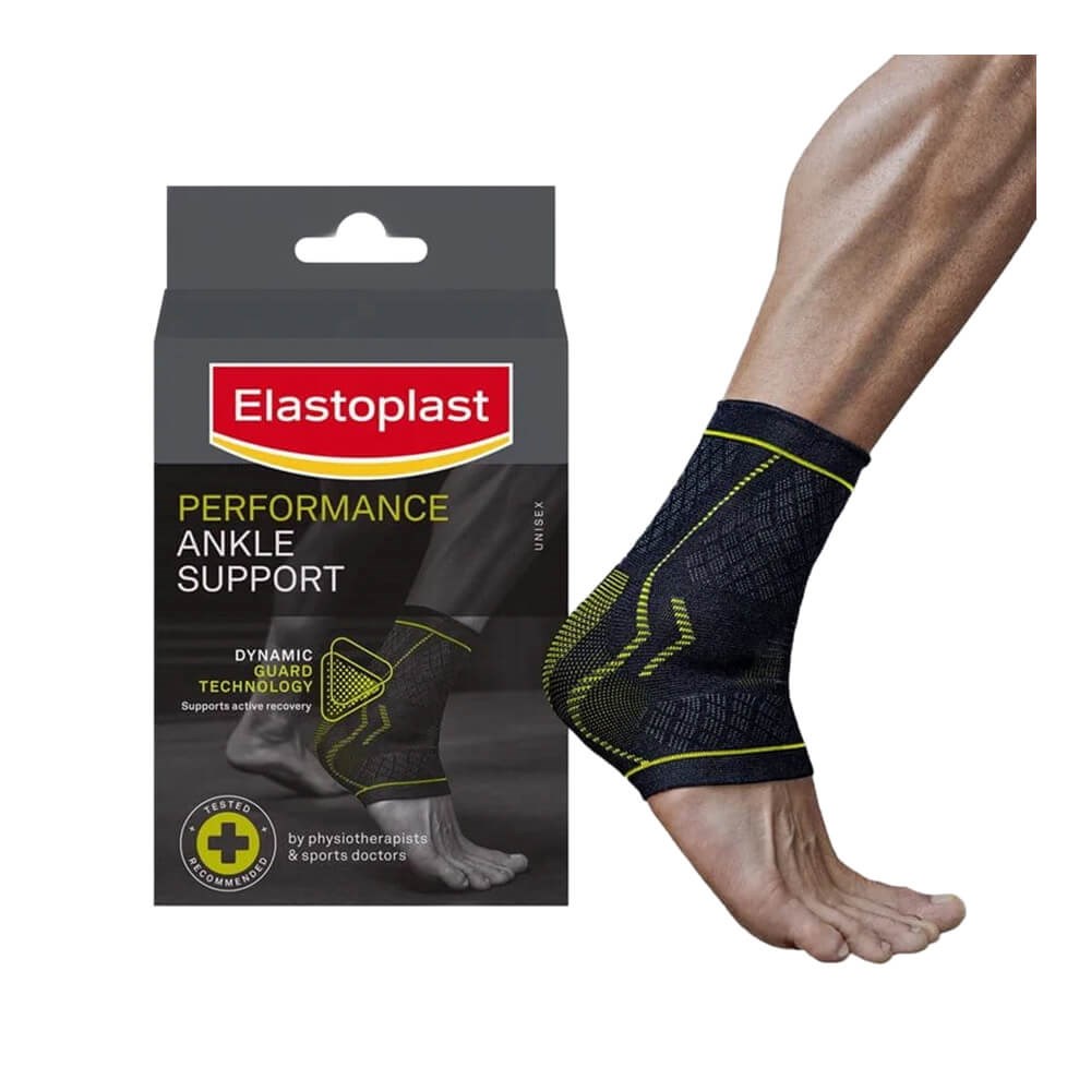 Elastoplast Performance Ankle Support helps provide strength, protection, compression and support to stiff, weak, painful, or injured ankles. It supports an active recovery by stimulating the bloodflow, and the flexible fabric provides ultimate comfort.