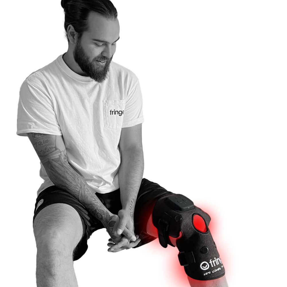 The Fringe Red Light Therapy Multi Joint Wrap – Knee, Ankle, Elbow combines light wavelengths of red light (660nm) and infrared light (850nm) and an optional vibration massage setting.