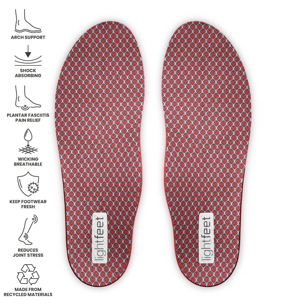 Lightfeet insoles have been designed by Australian Podiatrists since 2006 to provide superior arch support, shock absorption, and injury prevention. Lightfeet insoles are made with high-quality, recycled materials and are backed by our 100% 30 day money-back guarantee.